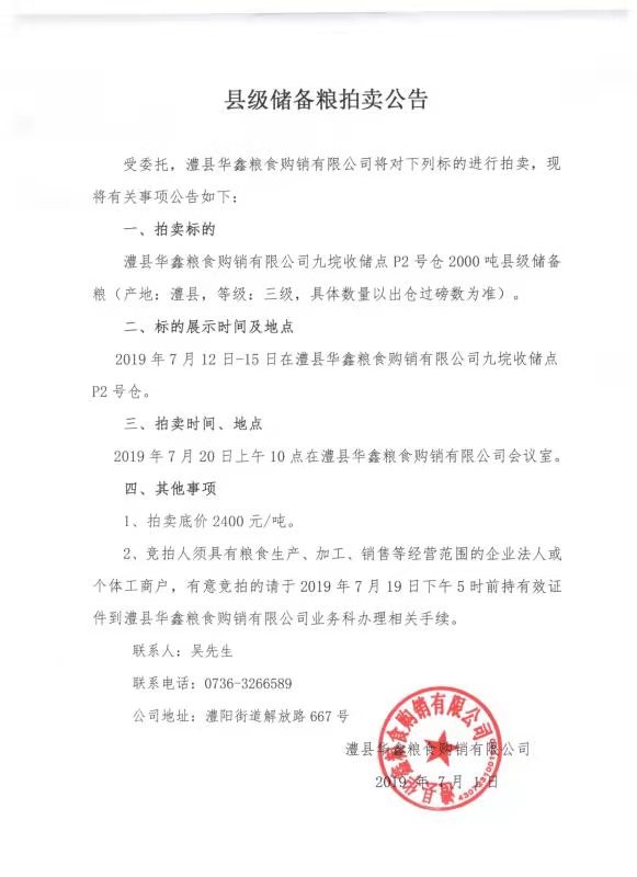 县级储备粮拍卖公告